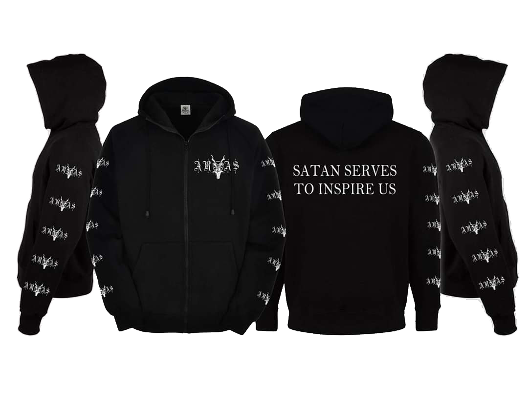 Hettegenser i begrenset opplag med glidelås. Arvas -logo på venstre bryst og på ermene. "Satan serves to inspire us" tekst på baksiden.