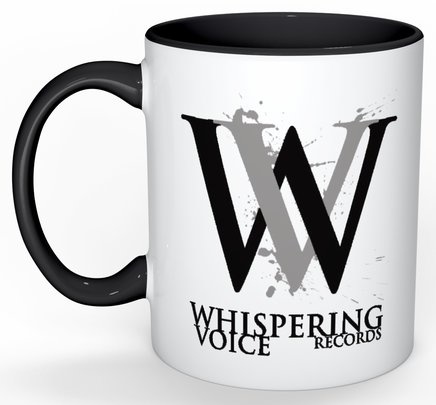 Vanlig kaffemugg i sort, hvitt og grått, med logoen til Whispering Voice Records. Fin og i standard størrelse.